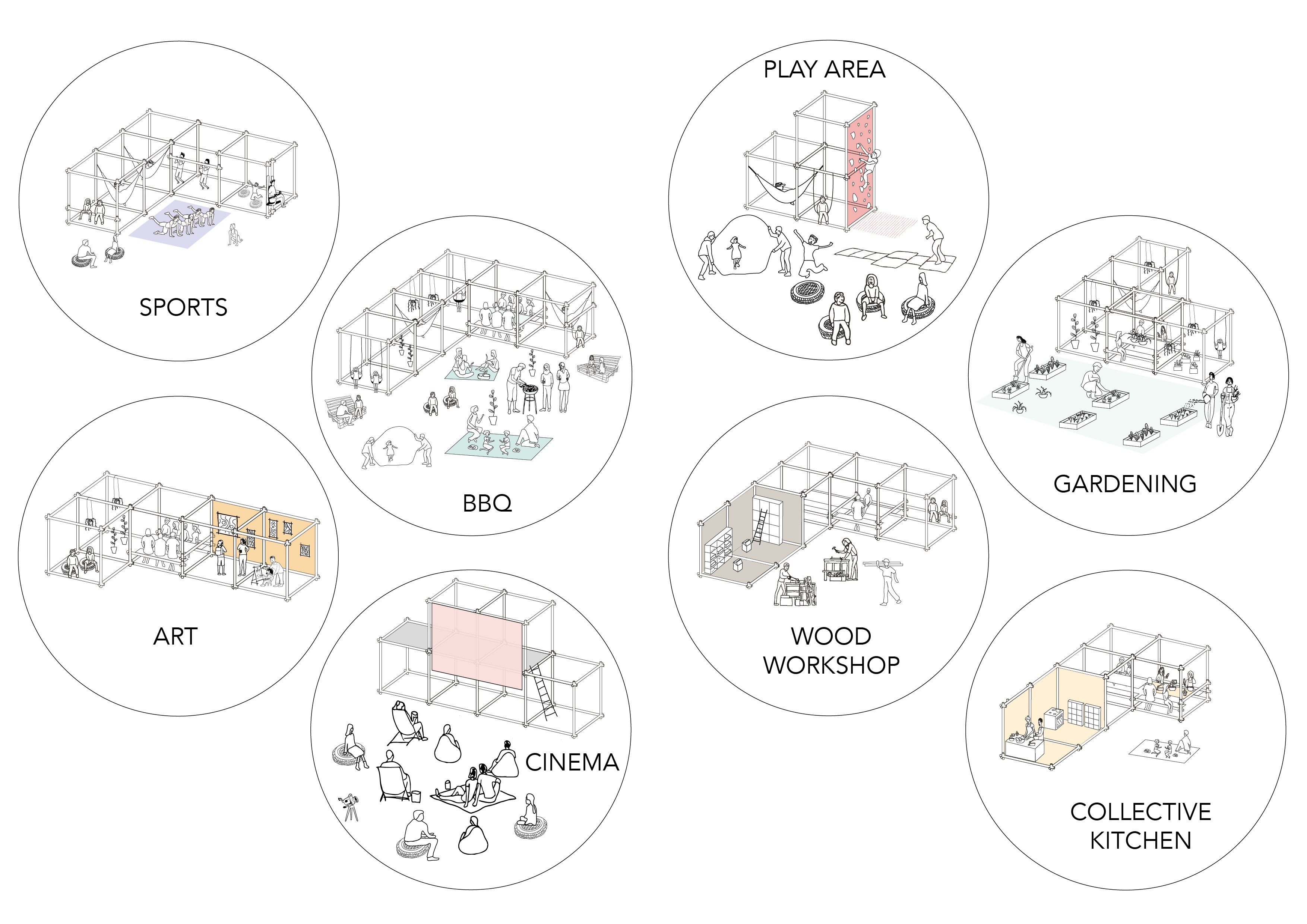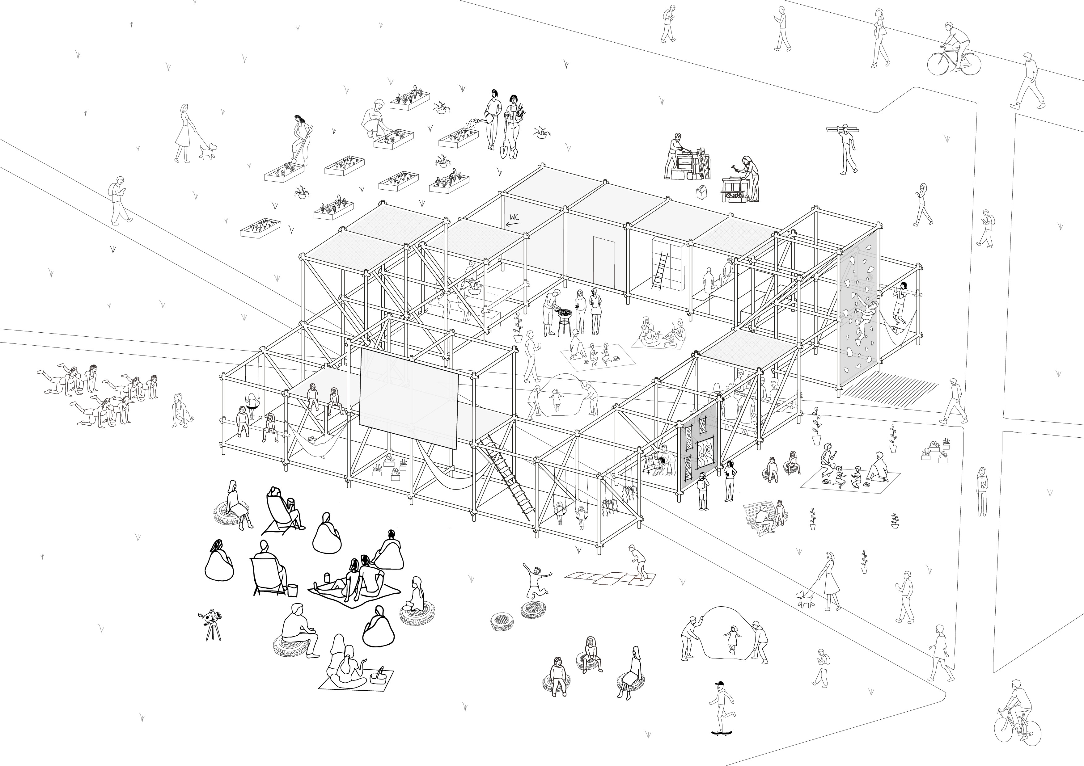 Through collaborative design methods and cooperation with the BENN initiative, the research aimed to understand the different perspectives and needs of the neighborhood to develop a space of encounter and mutual benefit. It proposes steps for achieving integration through temporary spaces of coexistence by applying a bottom-up approach, emphasizing the participation and contribution of both target groups. It reveals the potential of socio-spatial interventions in fostering mutual integration and adaptation, aiming to reduce feelings of fear and prejudices in global societies.
